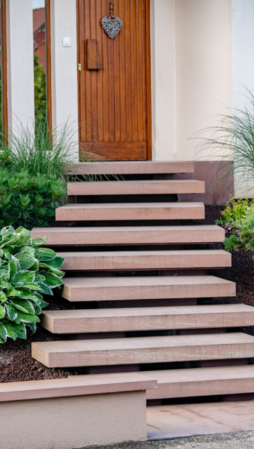Chaque époque à son matériau phare, et pour le cas présent c’était dans les années 80, les marches et dalles en béton gravier lavé apparent. Comme pour toute maison entretenue, un ravalement de façade amène souvent à se questionner sur l’état du jardin et des extérieurs. Alors pourquoi ne pas en profiter pour redonner de l’éclat à ces derniers ?